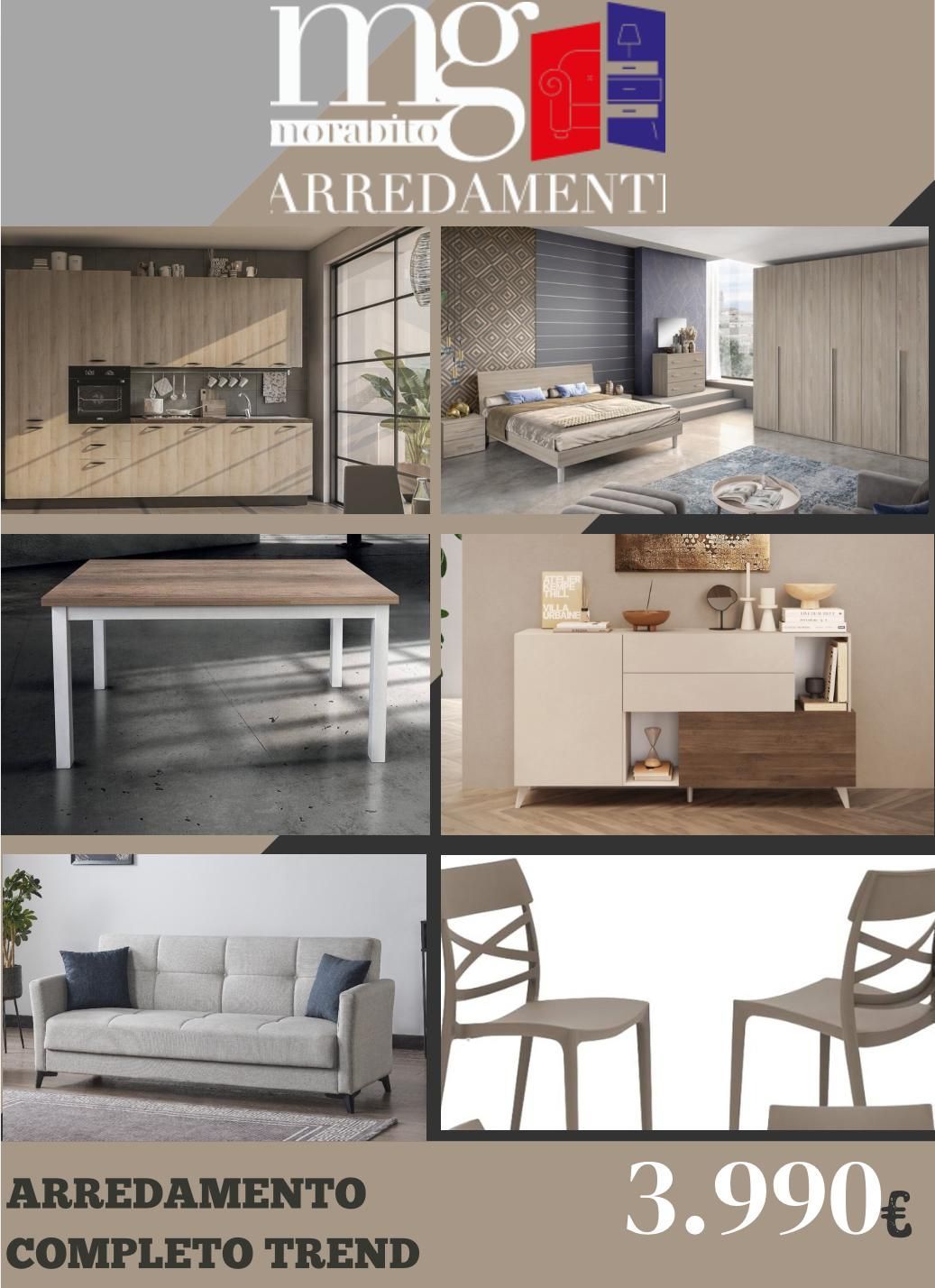 Noi di Mg Arredamenti, offriamo arredamenti completi per saloni e soggiorni, camere da letto, cucine componibili dal design classico, moderno e funzionale, un'ampia scelta di sedie e tavoli.
